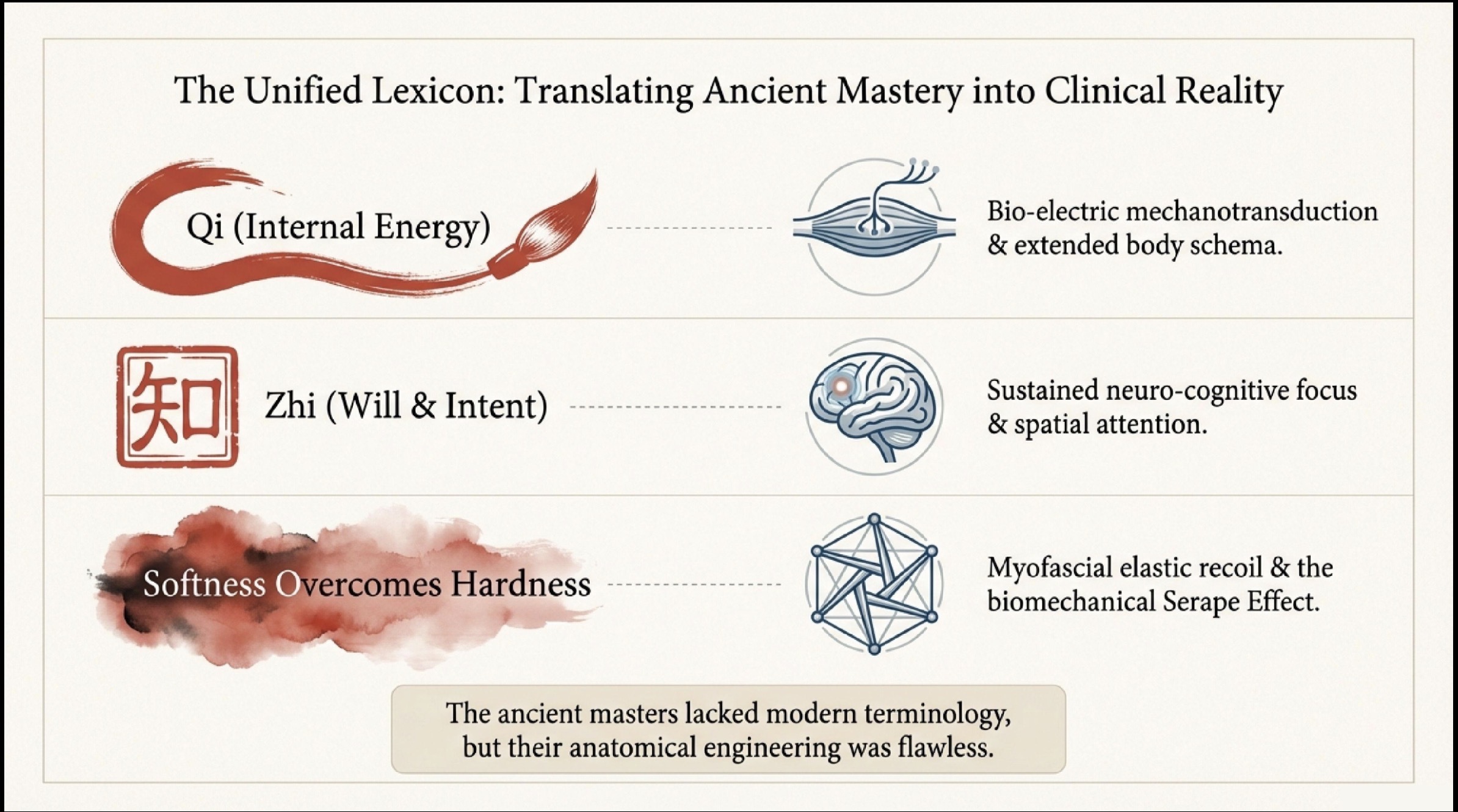 We are moving beyond the “clunky,” isolationist patterns of 1970s bodybuilding into the high-efficiency realm of biotensegrity, shifting the focus from mere muscle to a unified, resilient system. This transformation is anchored in several specific scientific pillars that define the internal arts.
