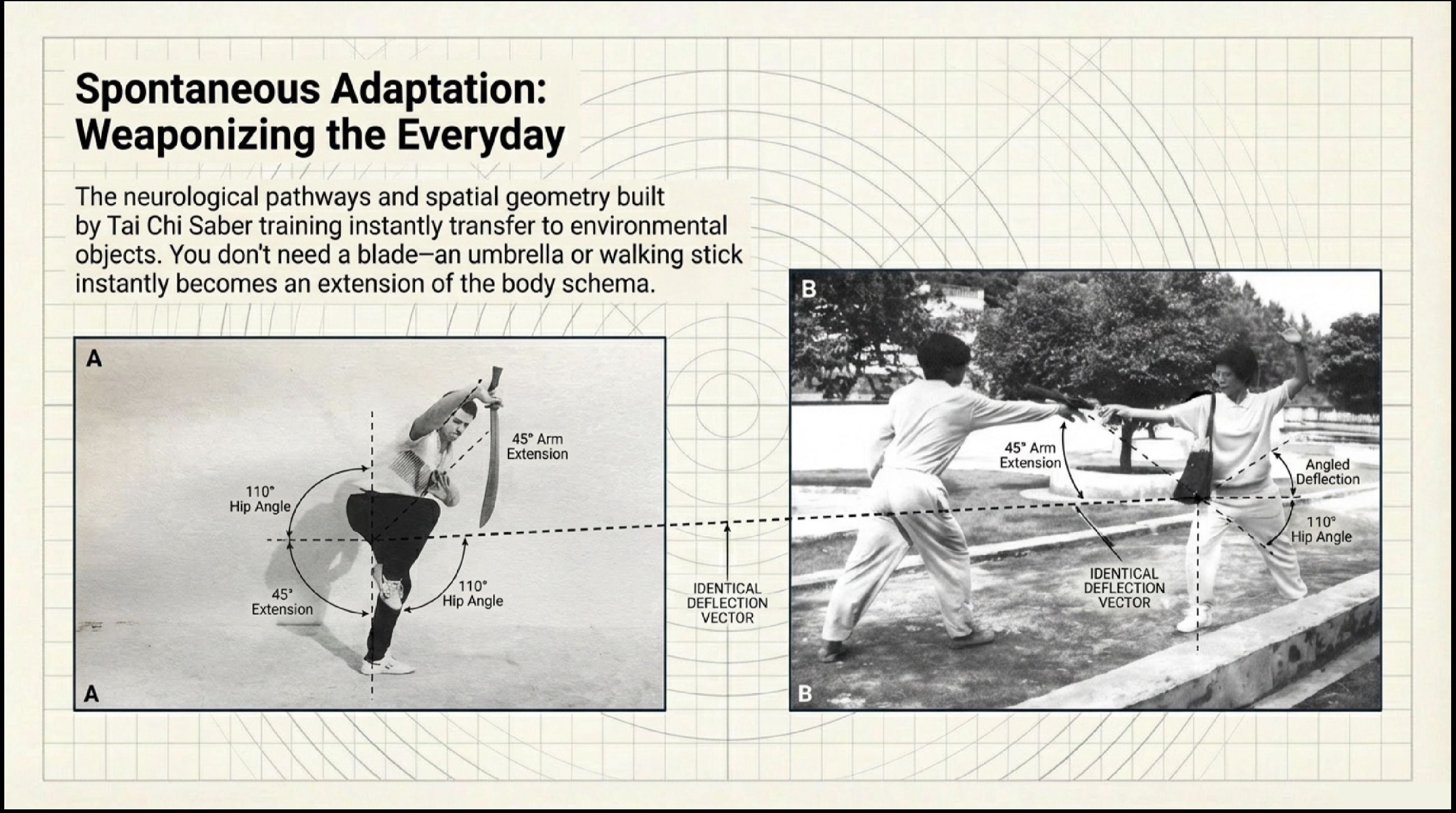 - Spatial Awareness: Through “Learned Dispositional Mindfulness,” the practitioner develops superior spatial cues. This translates to an increased ability to process environmental threats, moving from being “easy prey” to a confident, aware presence.