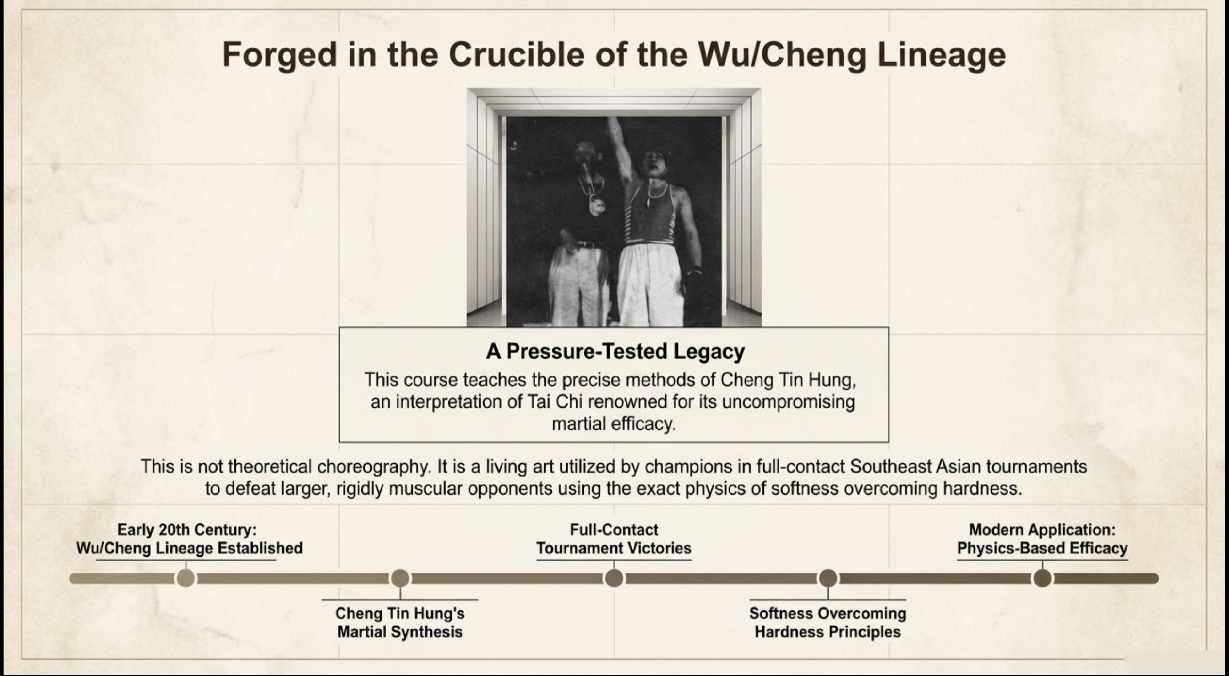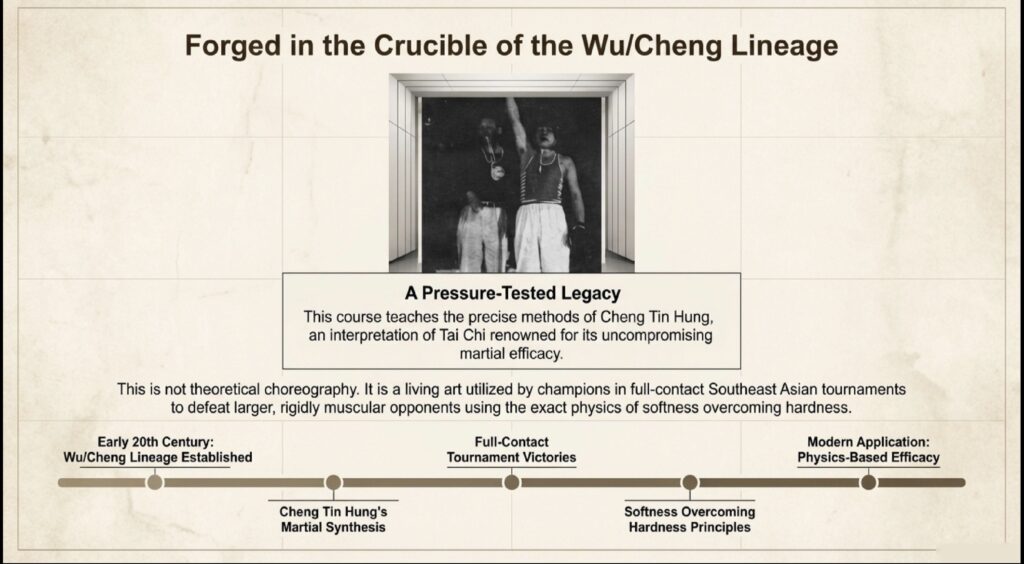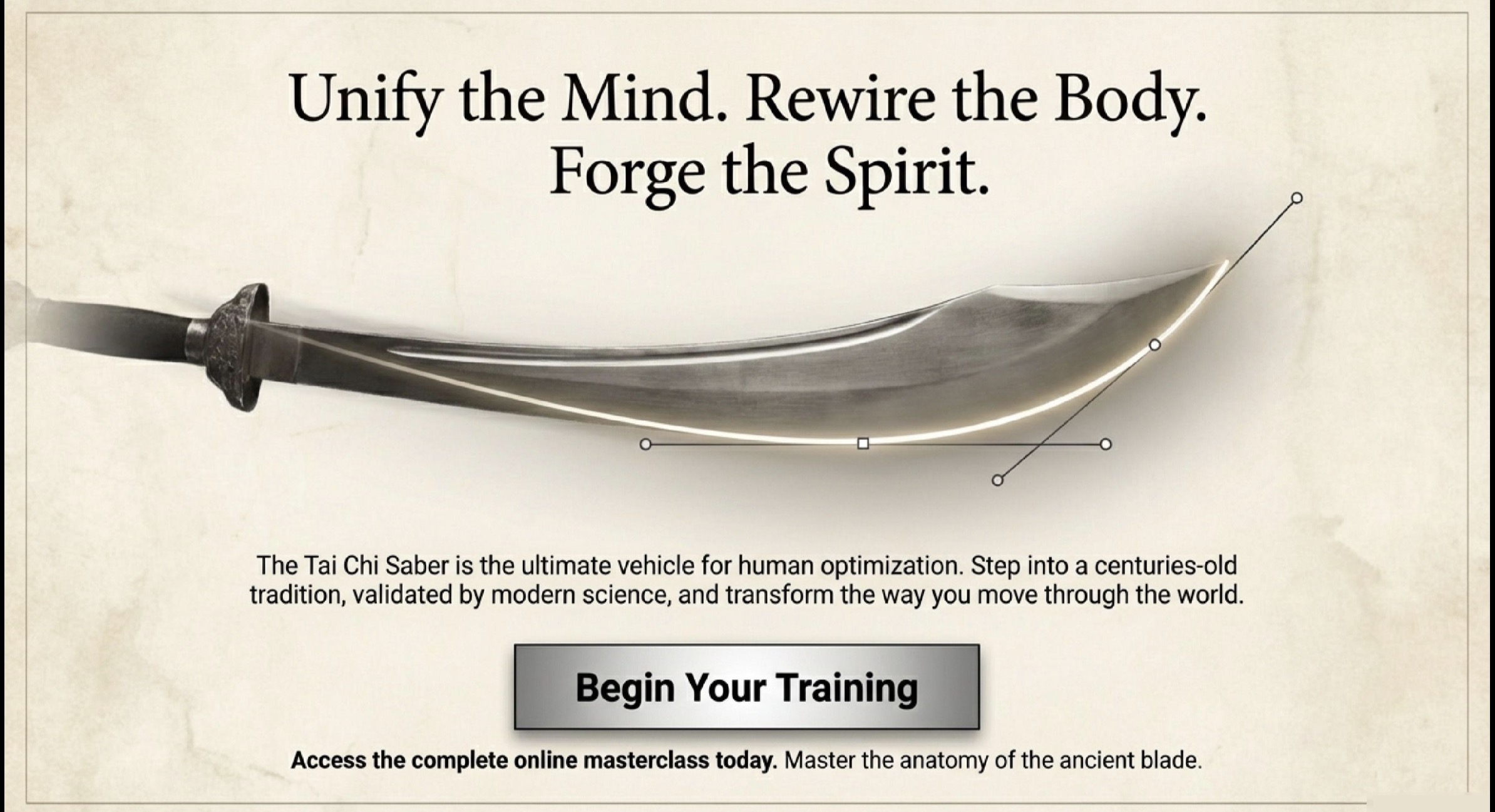 Unlike empty-hand forms, the Sabre’s off-center mass and the resulting centrifugal force during motion create a unique load that “pre-tensions” the fascial bodysuit. This course synthesizes the ancient wisdom of lineage-holders with the analytical precision of sports science to transform your physical structure.